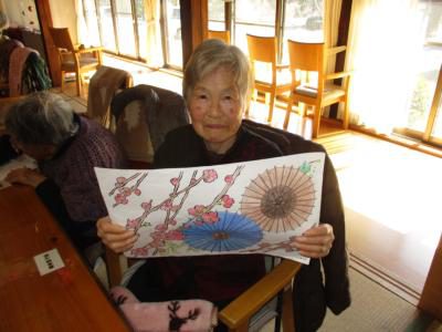 ウメの花の塗り絵が完成しました。