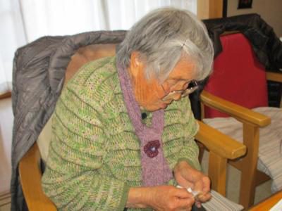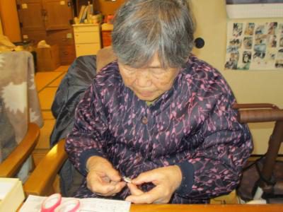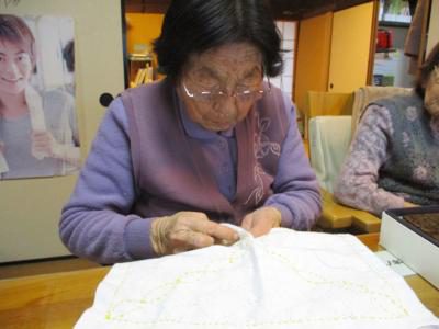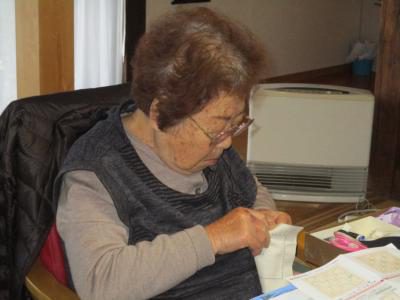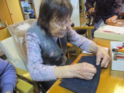 お得意の裁縫で刺し子に挑戦のお母さん