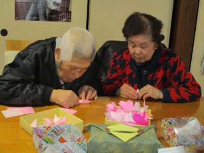桜の花びらを作る仲良しお父さん、お母さん