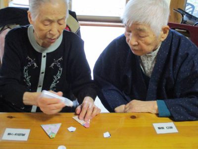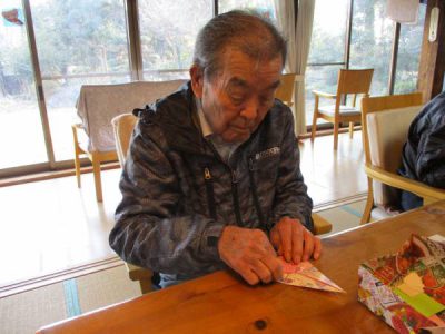 今週からご利用のお父さん、先週から取り組みのお母さん達に遅れを取るどころか、とっても器用にお内裏様とお雛様を折られています。