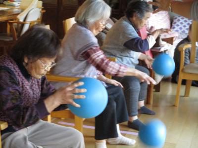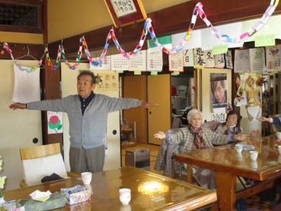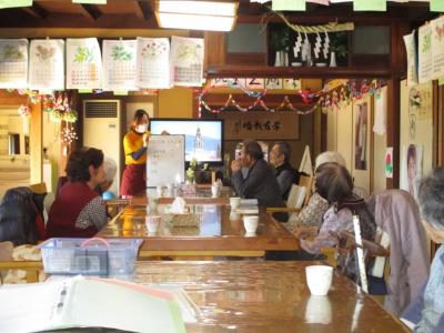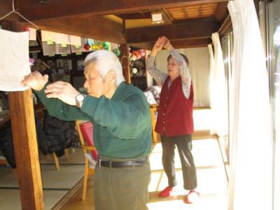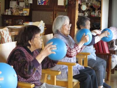 縁側では、機能訓練に取り組むお母さんたちの姿が・・・