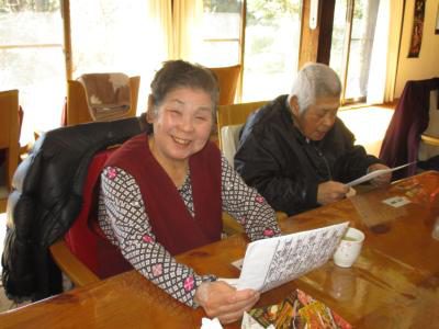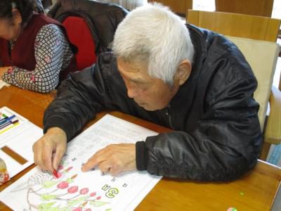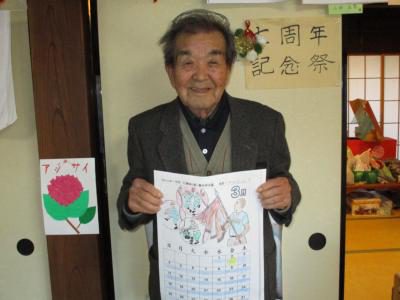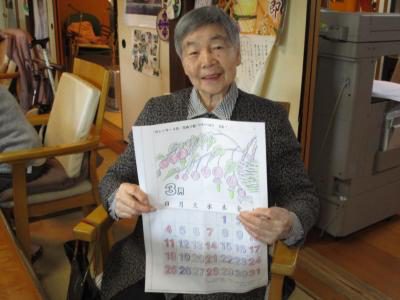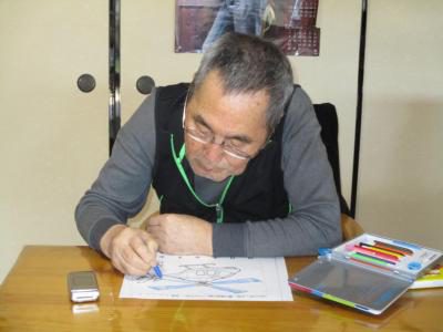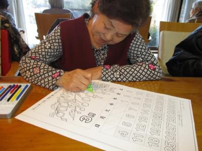 塗り絵カレンダーが完成し、充実感いっぱいのお父さんお母さん・・・
