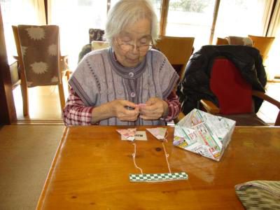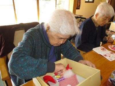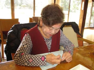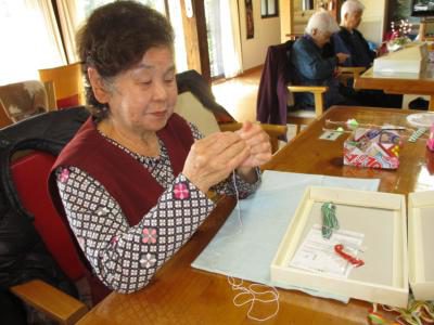 雛飾りの仕上げに取り組まれ、皆さん真剣な眼差しです