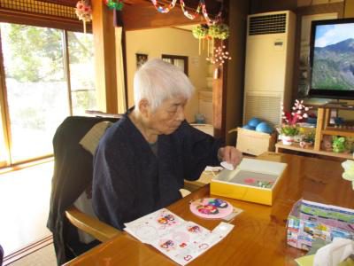 お雛様の押絵作りに取り組むお母さんも、完成目前!