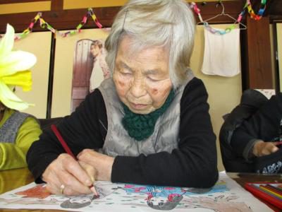 こちらのお母さん達は各々塗り絵に取り組まれ完成間近