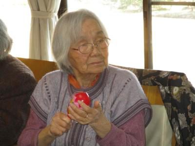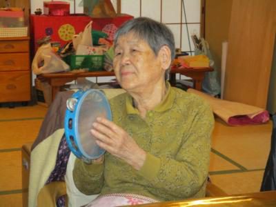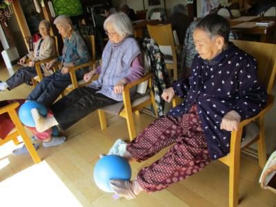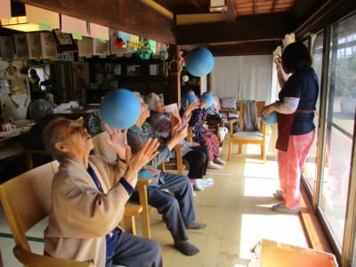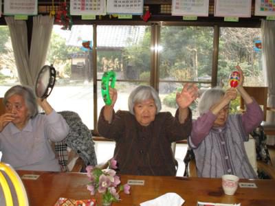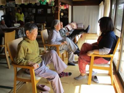 今日は陽の当たる縁側で上・下肢の筋力アップグッド (上向き矢印)
