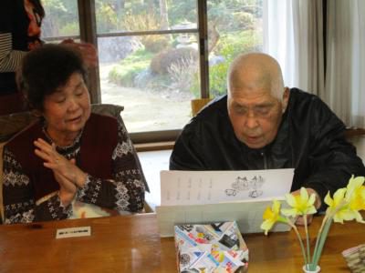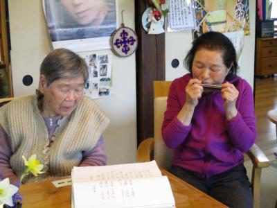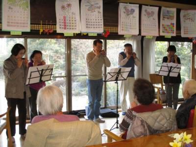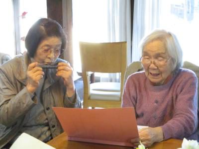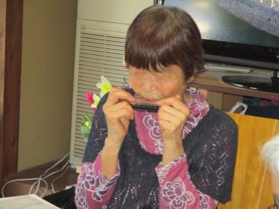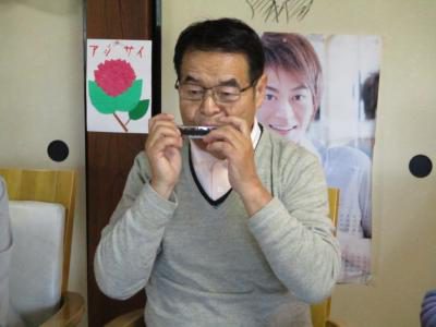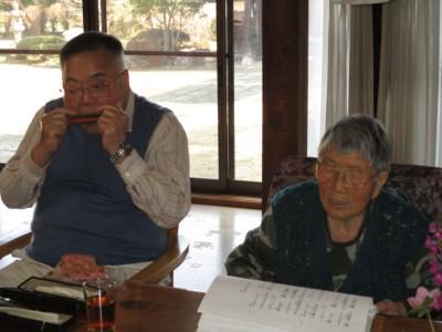 ハーモニカに合わせ一生に歌うお父さん、お母さん