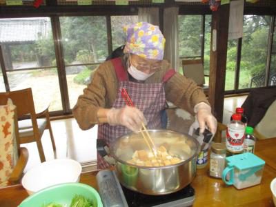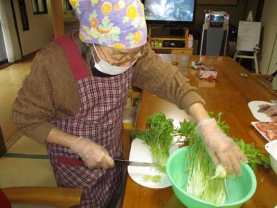 こちらでは、厚揚げと水菜の煮浸し作り・・・