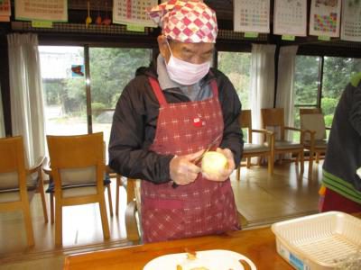 朝会を終えたら、今日は昼食作りを行いますヽ(^o^)丿