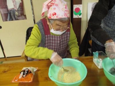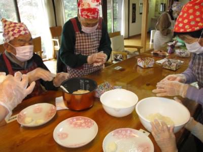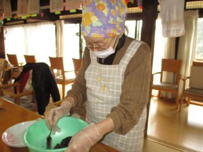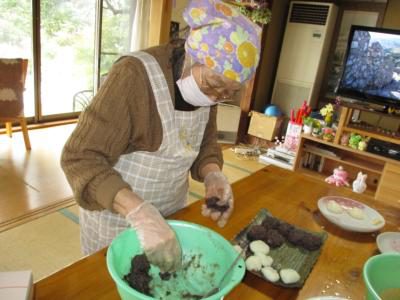 午後は、お彼岸中日の日にちなんで、【ぼた餅つくり】を行います。