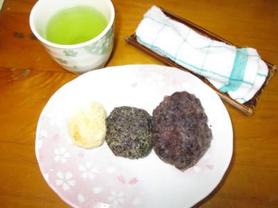 きな粉や、黒ゴマ、あんこの3種のぼた餅を作ります)^o^(