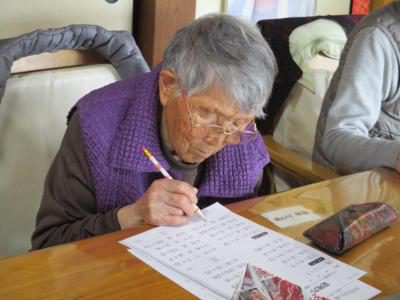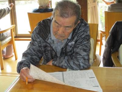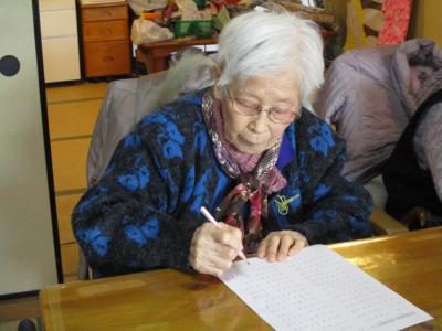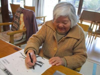 朝のセレモニー後は計算問題や数字塗り絵で脳の活性化