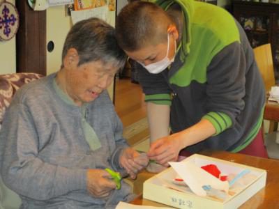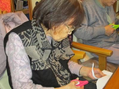色画用紙を細かく手でちぎると指のリハビリ効果