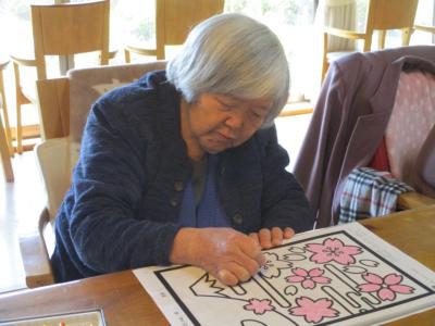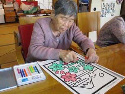 午前中は塗り絵で脳の活性化