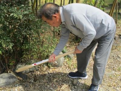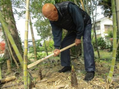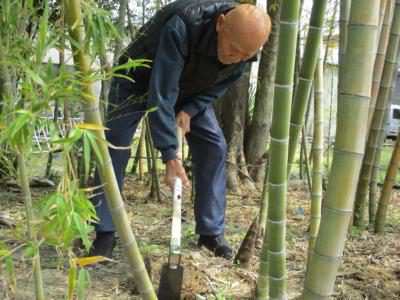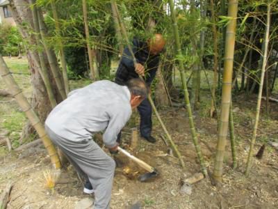 早速お父さん達に手伝ってもらいタケノコ掘り
