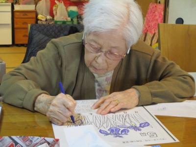 季節のお花、カキツバタを塗っていきます