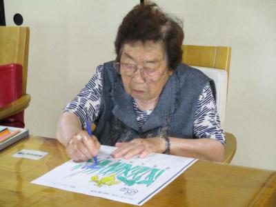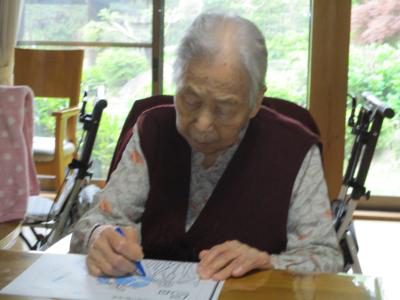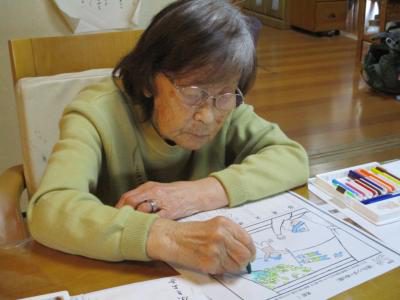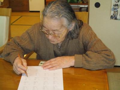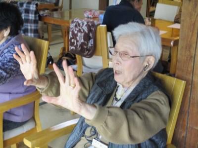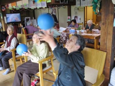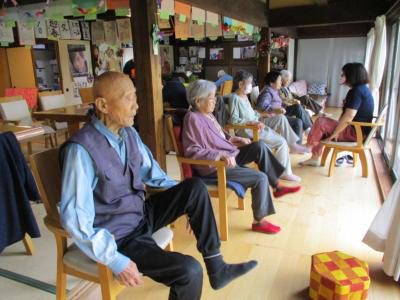 縁側では看護師の久美ちゃんと上、下肢の筋力アップ