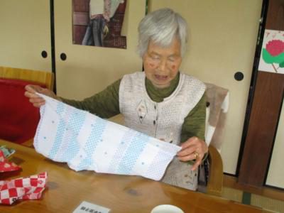 ご来庵早々洗濯物を畳んで下さるお母さん