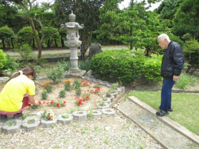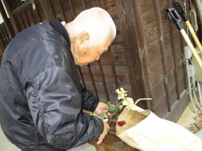 剪定したバラを挿し木にするんだと張り切るお父さん