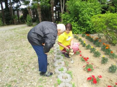 ペチュニア・マリーゴールドの摘み取りやバラの剪定を