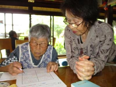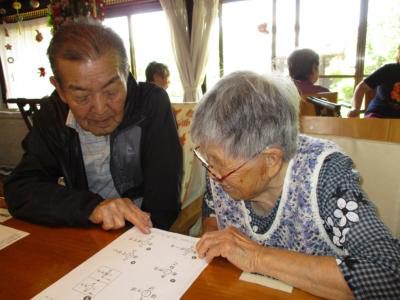 仲良く教え合ってパズル問題に取り組まれるお父さん・お母さん
