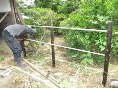 今日は庭師さんが来て下さり生垣を作って下さっています