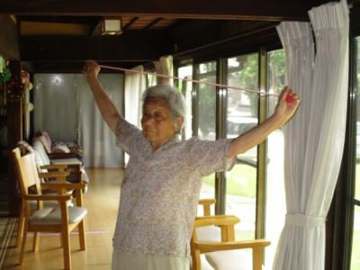歌謡体操はチューブを使って身体を動かします
