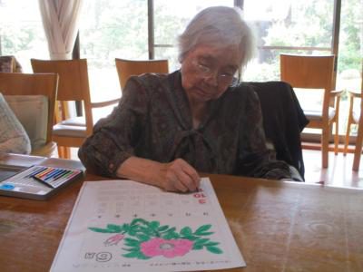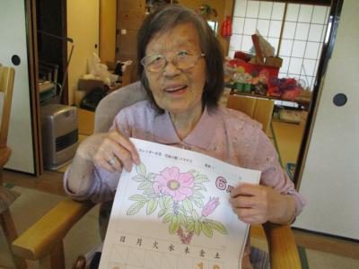 ハマナスの花を綺麗に塗っていきます
