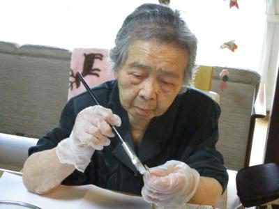 職人さんのようにニスを塗っていくお母さん