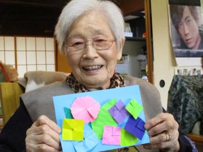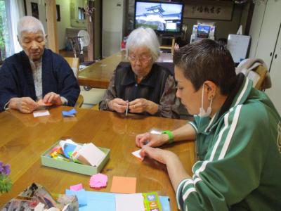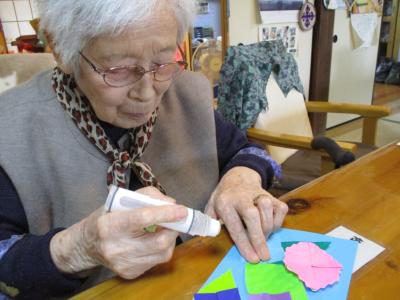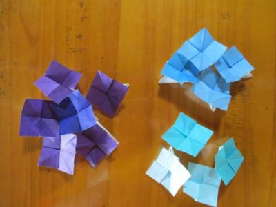 こちらのお父さん・お母さん折り紙紫陽花作りの続きです。