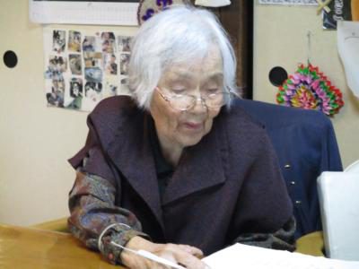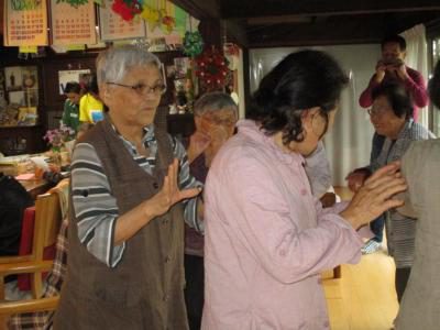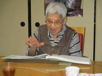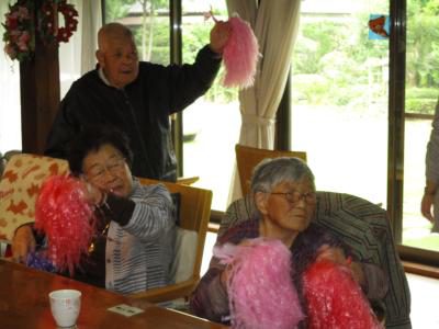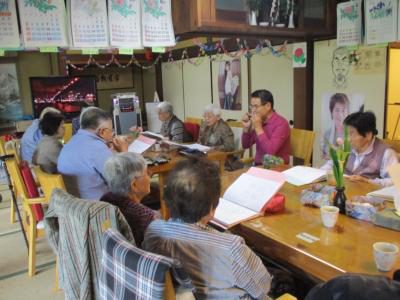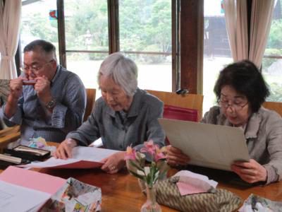 ハーモニカのメロディーに合わせ、大きな声で歌います