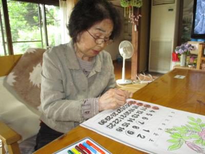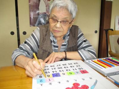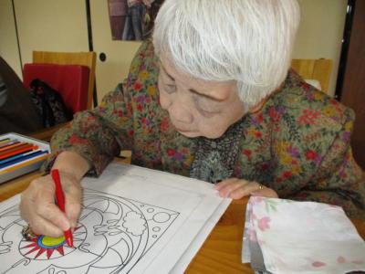 塗り絵は、配色を考え綺麗に色を塗っていきます