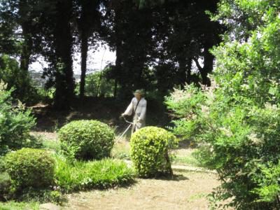 お庭では、斉藤さんが庭の除草作業に来て下さっています。