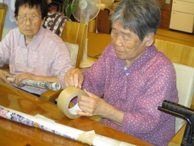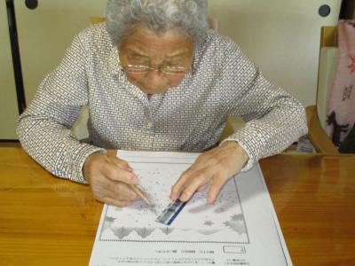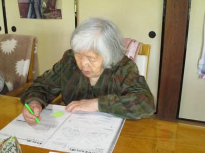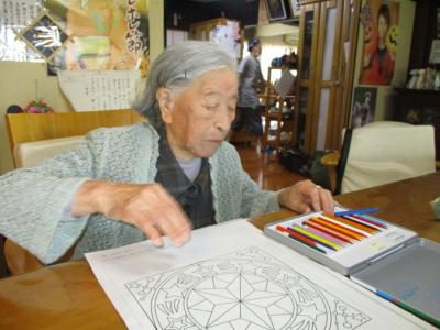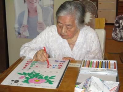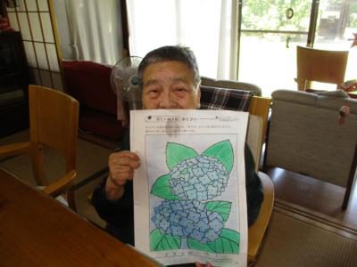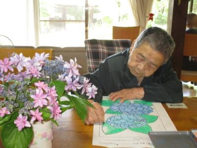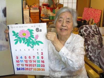 6月のカレンダー塗り絵が完成間近のお母さん。
