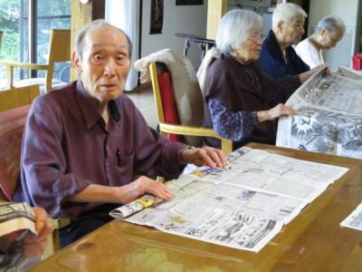 新聞紙をクルクル丸めたり、ひねったり、テープで留めてオリジナルの輪っかを作ります。