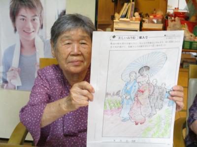 嫁入りの様子の塗り絵です。 若かりし日のお嫁に来た頃の遠い昔の事が思い出されていたようです。