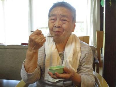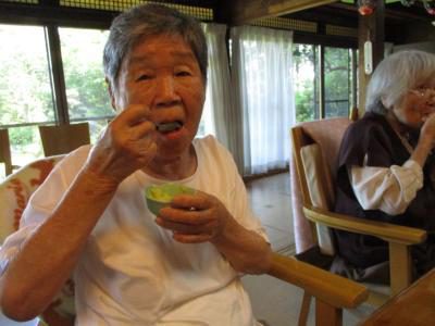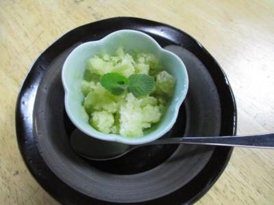 みっちゃんが作ってくれたメロンシャーベットで水分補給