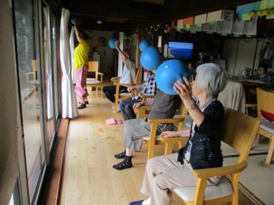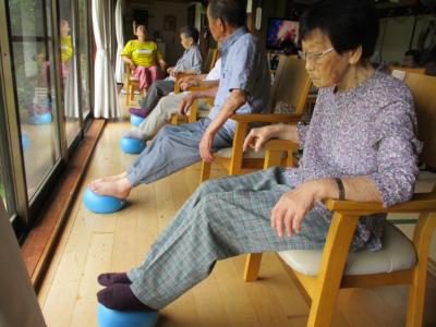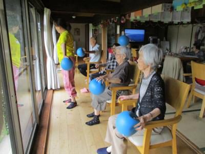 ボールを使っての体操は、楽しみながら意欲的に取り組まれています