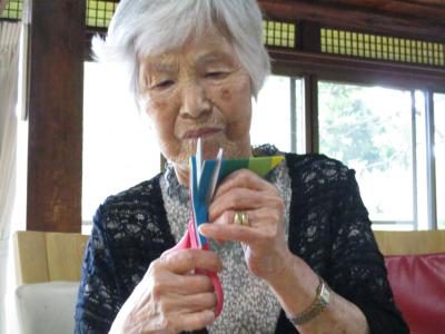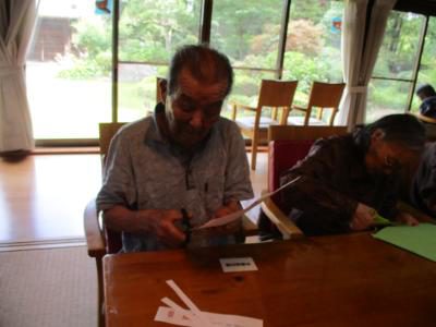 綺麗な柄の紙を丁寧にハサミを入れているお母さん達・・・