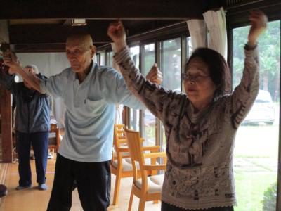 こちらのお母さんはスタッフと一緒に身体を動かせました
