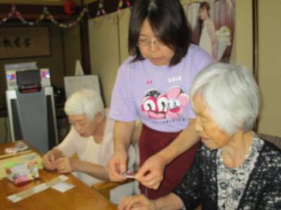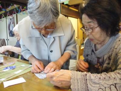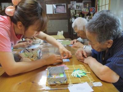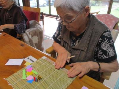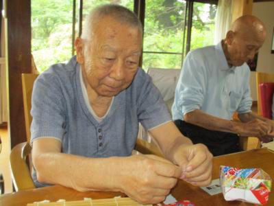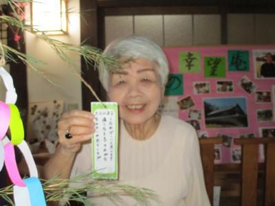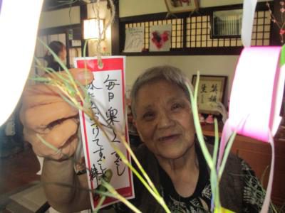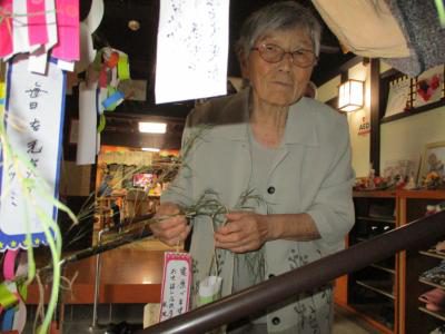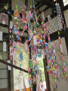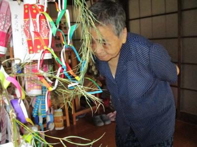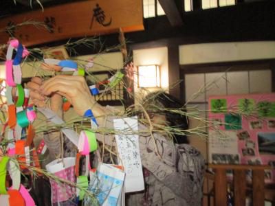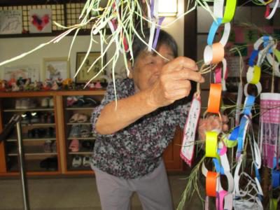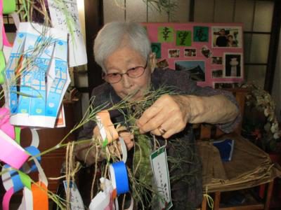 お願い事を書き終えると、皆さんで丁寧に飾り付け