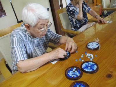 タイルを使ったコースターもお互い相談し合いながら