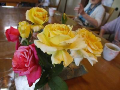 幸望庵に咲く綺麗なバラを摘み取り、皆さんにも見える様にとテーブルに飾らせて頂きました