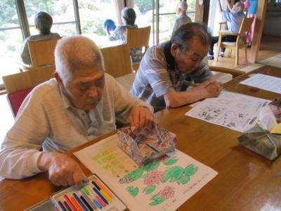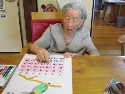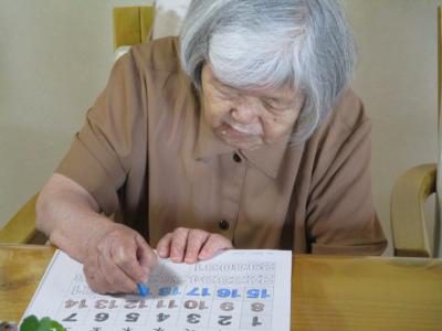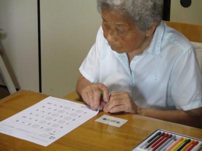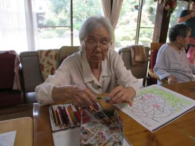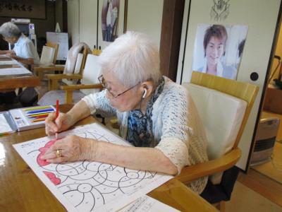 脳トレ組は、数字塗り絵や塗り絵カレンダー等に集中され、細やかに丁寧に取り組まれています。