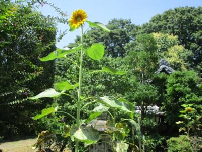 庭のひまわりも、さすがの暑さにバテ気味に見えますたらーっ (汗)