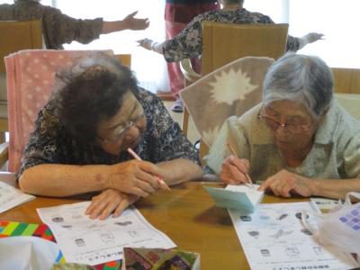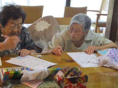 同じ問題に取り組む母達は、仲良く解いて頑張っています指でOK