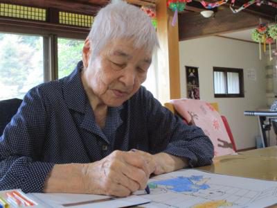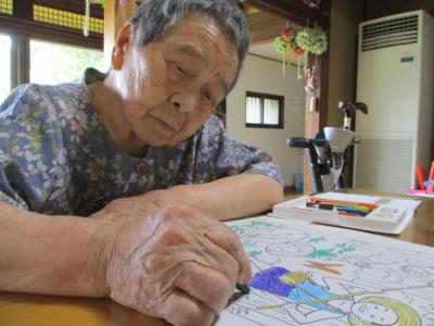 カレンダー塗り絵に取り組むお母さん・お父さん!