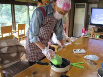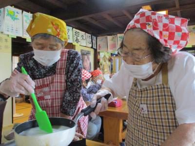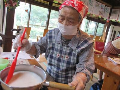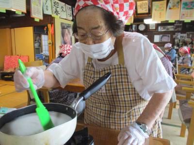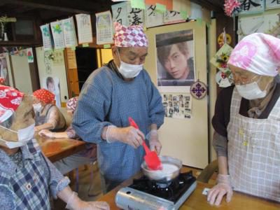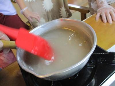皆さんで協力して混ぜて行く内に、段々と生地が透き通って来ました。