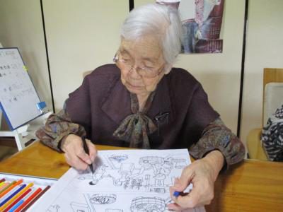 塗り絵は、色を選んだり指先を使うので、脳の活性化にもとても効果的だそうです