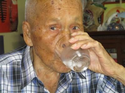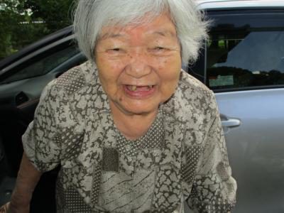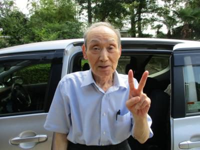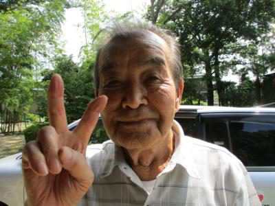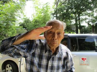 カメラをむけると敬礼でご挨拶してくれるお父さん